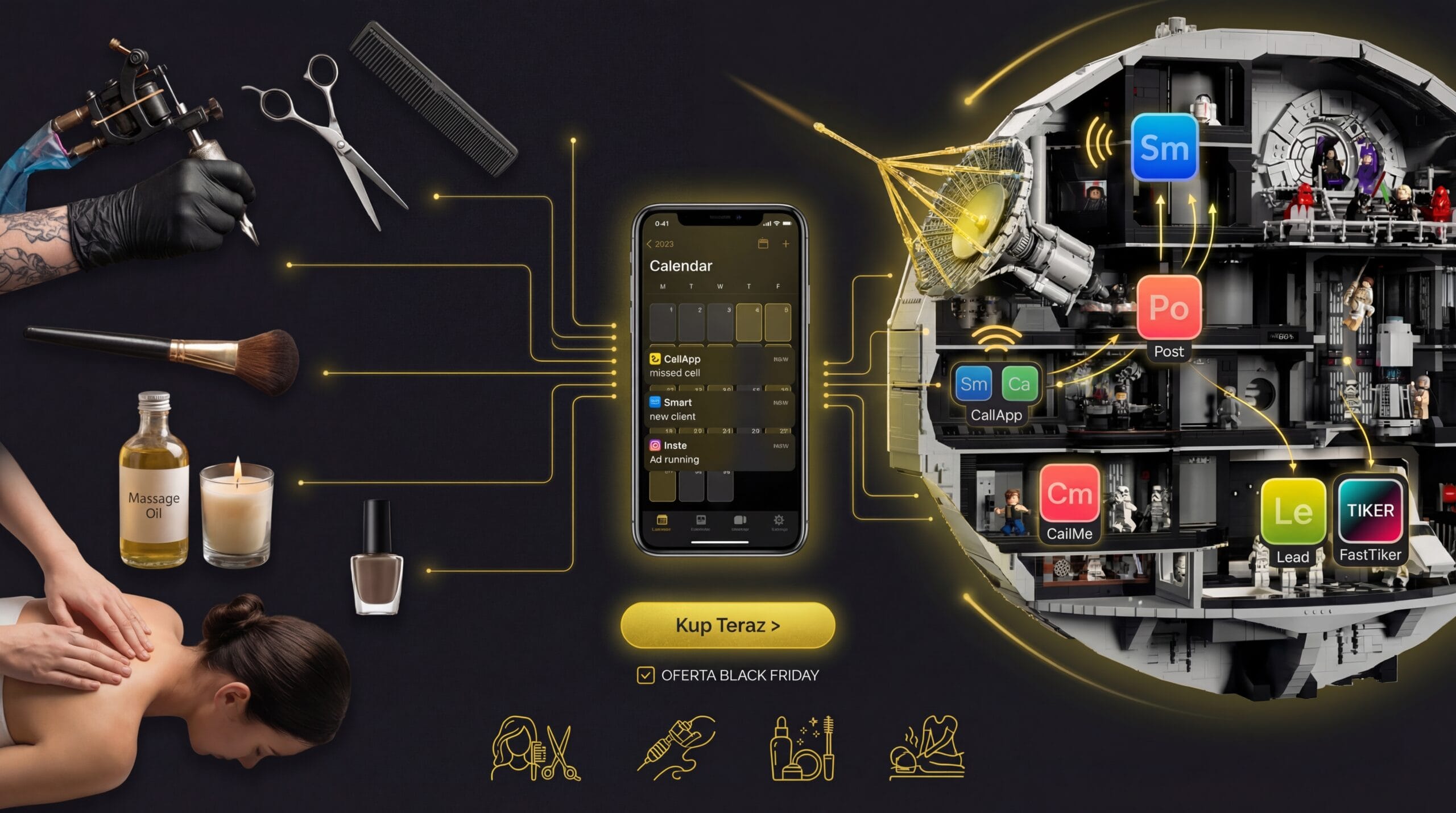Twoje dłonie pracują, tworzą piękno, ale telefon milczy, a kalendarz ma luki, które bolą Twój portfel. Klientka wychodzi zachwycona, ale zapomina wystawić opinię, a Ty nie masz siły, by po 10 godzinach pracy ustawiać reklamy na Instagramie. Zmień to. Pakiet Szybki Start to Twój cyfrowy asystent: CallApp automatycznie wyśle SMS, gdy nie możesz odebrać albo poprosi o opinie po kontakcie, a te negatywne zablokuje przed publikacją na Google Maps. FastTony Insta automatycznie ustawi reklamy na Instagramie. Chcesz pełnej dominacji w okolicy? Wybierz Pakiet Specjalny. Dołączamy tu FastTony Post i Smart – dwa narzędzia, które same zapełnią Twój fanpage treściami, ściągną nowe klientki reklamami i zbudują kolejkę chętnych, podczas gdy Ty po prostu robisz to, co kochasz.