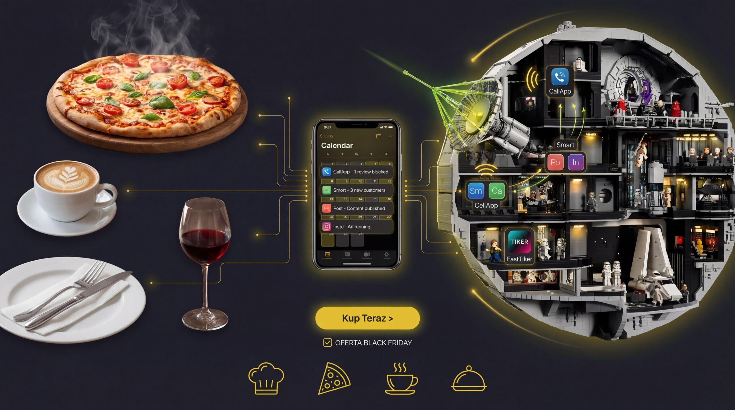 Pusty stolik we wtorek wieczorem to najdroższy mebel w Twoim lokalu. Wiesz, że Twoje jedzenie jest świetne, ale klienci wybierają konkurencję, bo tam „coś się dzieje” w social mediach. Do tego strach przed jedną złą opinią, która niszczy reputację. Szybki Start (Smart + CallApp) to t315arcza i magnes: CallApp przechwytuje opinie niezadowolonych klientów, zanim wyleją żale w sieci, a Smart ściąga głodnych gości z okolicy precyzyjną reklamą. Wybierając Pakiet Specjalny, zyskujesz Post i Insta – Twój lokal zacznie „pachnieć” przez ekran telefonu dzięki regularnym, apetycznym treściom, które sprawią, że klienci poczują głód na sam widok Twojego profilu. A Ty będziesz mógł się zajmować swoim lokalem, zamiast przygotowywaniem postów czy walką z trollami.