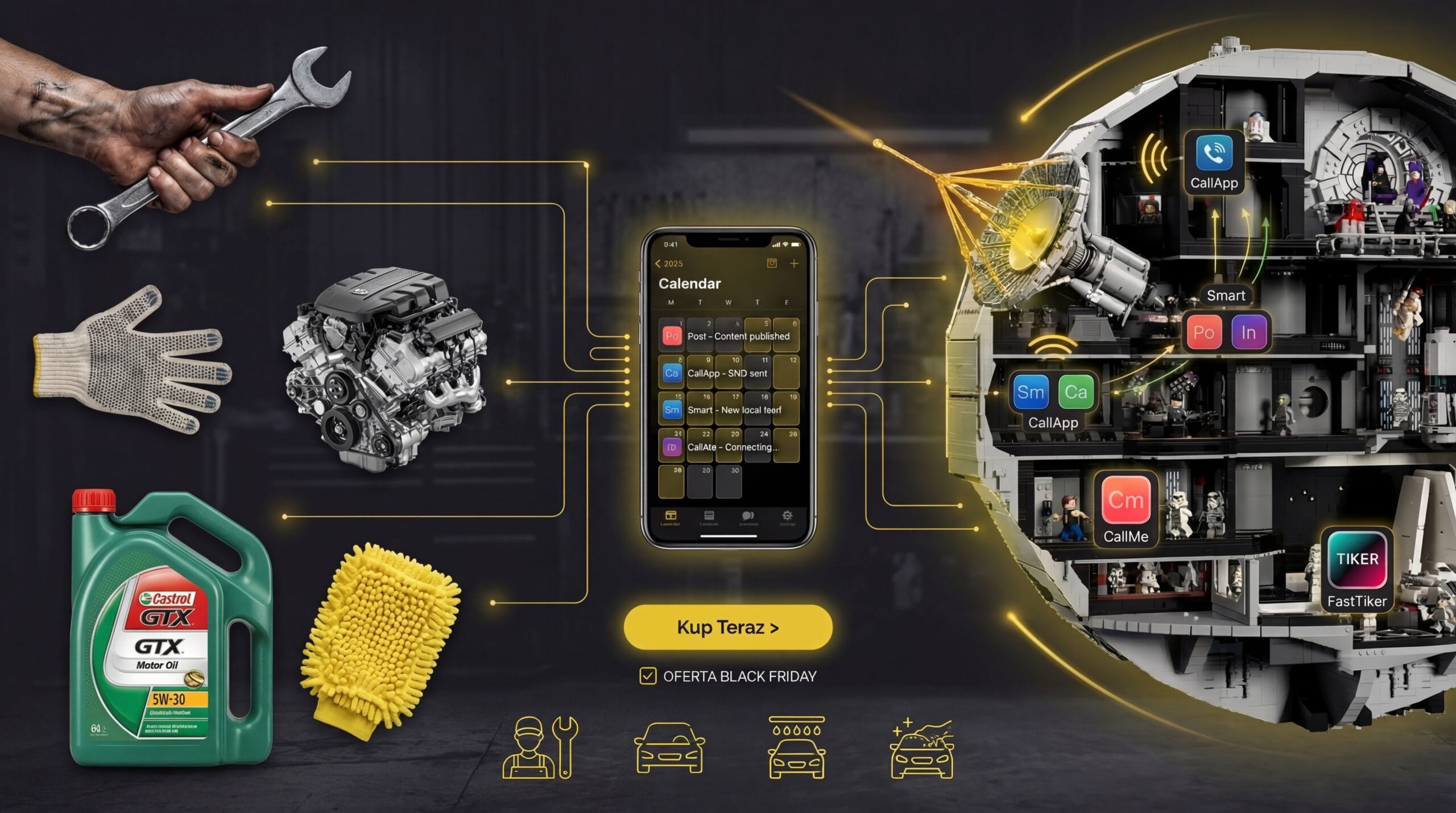 Jesteś w kanale, ręce masz umazane smarem, a telefon dzwoni. Nie odbierzesz – fizycznie nie masz jak. Wiesz, co robi klient? Dzwoni do warsztatu obok, bo myśli, że u Ciebie „nikt nie pracuje”. To frustrujące tracić zlecenia przez to, że masz pełne ręce roboty. Szybki Start (Post + CallApp) to Twój automat do obsługi wizerunku i klienta. Gdy nie odbierasz, CallApp wysyła SMS: „Oddzwonię, jak wyjdę spod auta” – klient czuje się obsłużony i czeka. W międzyczasie Post automatycznie publikuje treści na Facebooku, pokazując, że Twój warsztat tętni życiem, nawet gdy Ty nie masz czasu dotknąć telefonu. Chcesz zapełnić kalendarz samymi „tłustymi” zleceniami? Wybierz Pakiet Specjalny. Dochodzi tu Smart, który ściąga kierowców z okolicy na Twoją stronę. A gdy tam trafią? CallMe robi różnicę. Zamiast pozwolić im wyjść, system proponuje darmową rozmowę i łączy Cię z nimi w 28 sekund. Ty tylko wycierasz ręce w szmatę i umawiasz naprawę, zanim konkurencja w ogóle zauważy klienta na rynku