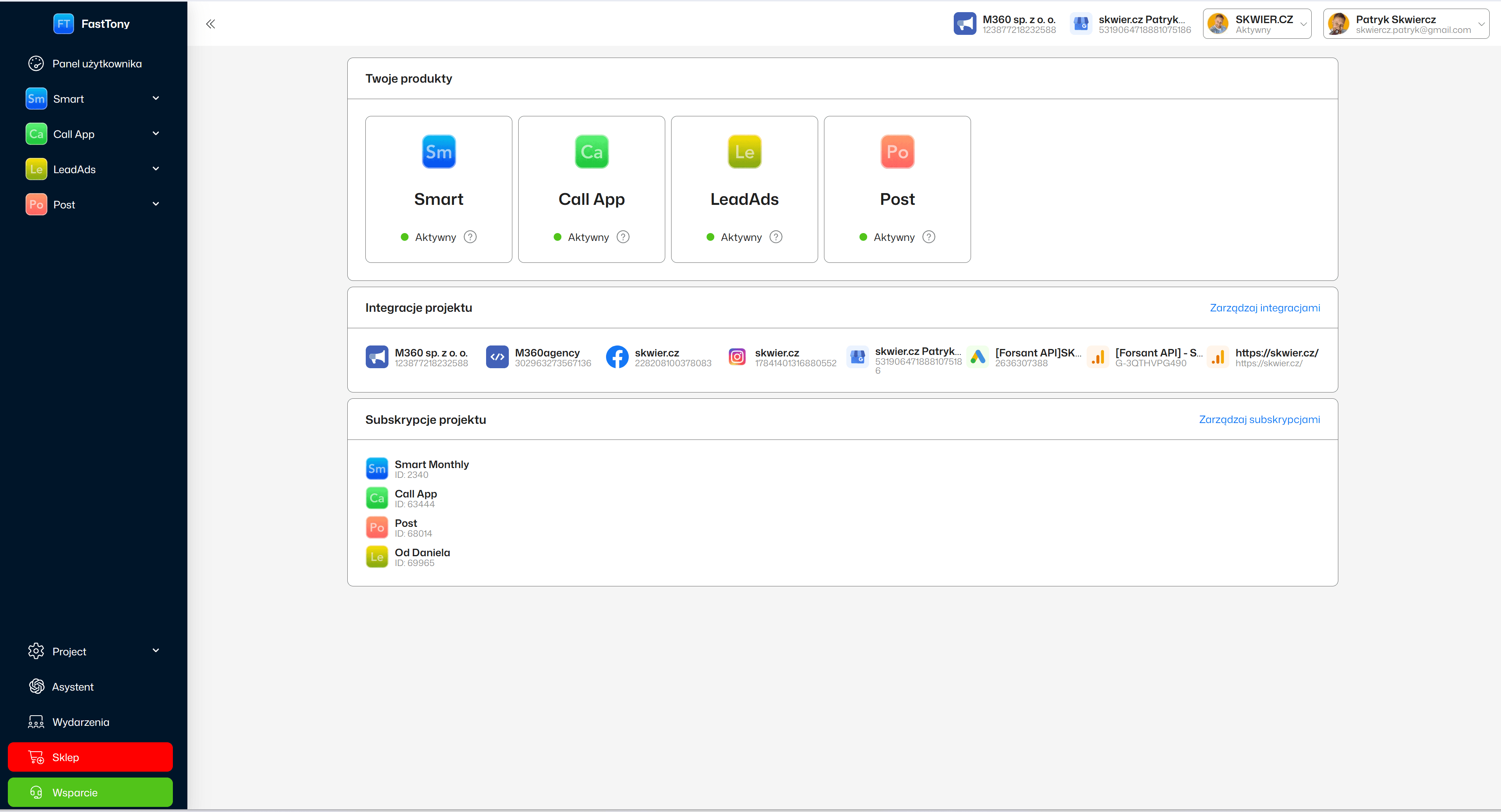 - FastTony CallApp - automatyzacje połączeń i follow-up.